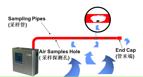 吸氣式感煙火災(zāi)探測(cè)器跟傳統(tǒng)的(點(diǎn)型)煙霧探測(cè)器有所不同。空氣采樣系統(tǒng)由在天花板上方或下方每隔幾米平行安裝的管道組成。在每根管子的上面,每隔幾米就鉆有一個(gè)小孔,這些小孔很均勻的在天花板上分布,這樣就形成了一組矩陣型的空氣采樣孔。利用探測(cè)主機(jī)內(nèi)部抽氣泵所產(chǎn)生的吸力,空氣樣品或煙霧通過(guò)這些小孔被吸入管道中并傳送到達(dá)探測(cè)主機(jī)內(nèi)部的高靈敏度煙霧探測(cè)腔檢測(cè)空氣樣品中的煙霧顆粒濃度,可實(shí)現(xiàn)未現(xiàn)火苗時(shí)提前報(bào)警,以達(dá)到在損失未發(fā)生時(shí)就已扼殺在搖籃中。
