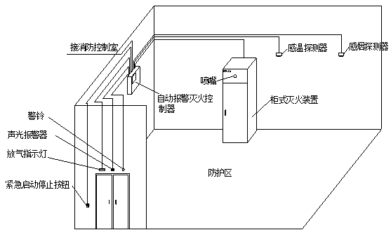 注意:無論控制主機處于自動或手動狀態(tài),按下“緊急啟動”和“手動啟動”按鈕,都可啟動滅火裝置。