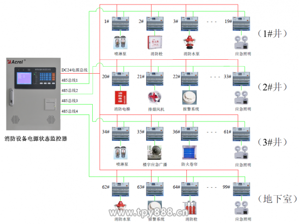 根據(jù)智能化管理要求,需要對整個商場綜合樓的消防設備供電電源的工作狀態(tài)進行全過程連續(xù)監(jiān)測、集中控制和統(tǒng)一調度。