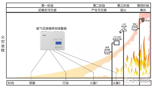 FMST的設(shè)計(jì)思想是針對火災(zāi)初期(過熱、悶燒、或低熱輻射和氣溶膠生成等不可見煙霧生成階段)的探測與報(bào)警,可以在火災(zāi)生成初期及時(shí)發(fā)現(xiàn)并排除火災(zāi)隱患,使火災(zāi)損失降到低。