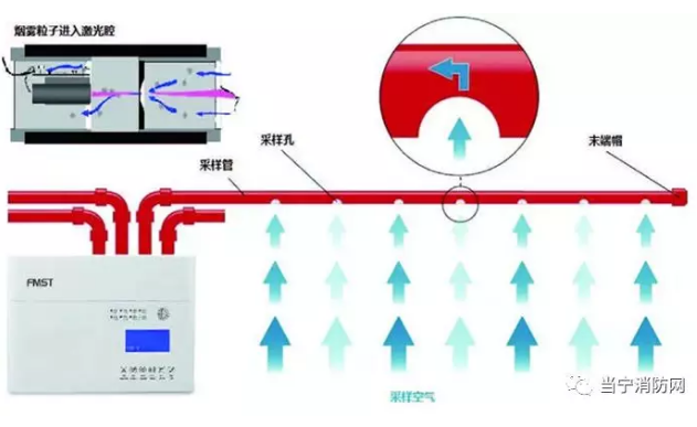 其工作原理在于通過分布在被保護(hù)區(qū)域內(nèi)的采集管網(wǎng)采集空氣樣品,經(jīng)過一個(gè)特殊的過濾裝置濾掉灰塵后送至一個(gè)特制激光探測器??諝鈽悠吩谔綔y器中經(jīng)過分析,將空氣中燃燒產(chǎn)生的微粒加以測定,由此給出準(zhǔn)確的煙霧濃度值,并根據(jù)使用者事先設(shè)定的報(bào)警煙霧濃度值發(fā)出火災(zāi)報(bào)警。而此次全新上市的FMST-FXV(E)系列則在技術(shù)性能上全面升級。